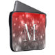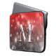 Esta manga de ordenador portátil tiene un fondo de chispa roja y gris. Sencillo y contemporáneo. Completarlo con un monograma y un nombre personalizados. Creado por Simply Farmhouse Press.