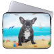 El perro lindo sentado en la playa es un regalo perfecto para alguien que ama esta raza de perro.