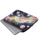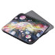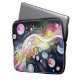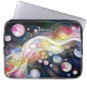 Cintas y burbujas giratorias y multicolores flotan sobre un fondo oscuro, creando una atmósfera vibrante y soñadora. La composición incluye diferentes tonos de azul, rosa, amarillo y verde, con líneas delicadas y movimiento fluido.