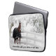 Un caballo marrón hermoso se coloca por debajo un árbol imperecedero en un día enérgico en enero. El caballo lleva una capa en ella está detrás, sacado el polvo con nieve polvorienta, y las ramas y las agujas del árbol son pesadas. Los bordes dreamlike blancos ablandados, enmarañados le dan un efecto mágico del invierno. Esto es una foto de color original con el aumento digital.