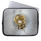 Cabeza conceptual, mecánica, humana con manómetro antiguo y engranajes metalizado sobre fondo industrial gris. Estilo Steampunk.
