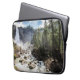 Esta foto ofrece último invierno en Nevada que las caídas están en flujo completo y el agua truena de la cara del acantilado y toma otra vez en el río merced mientras que pasa rocas y abetos.