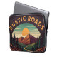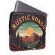 Un diseño gráfico llamativo que presenta la frase "Rutic Roads" en un tipo de letra audaz y aventurero. El diseño incorpora elementos de la naturaleza, como tonos tierra y texturas, que evocan un sentimiento de pasión y exploración. La composición general es dinámica y atrayente, invitando a los espectadores a embarcarse en su propio viaje.