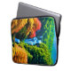 Una serena cascada china rodeada de coloridos árboles y montañas en medio de una hermosa naturaleza.
