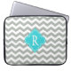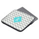 Elegante, de moda, elegante y clásico chevron zigzag stripes, aqua azul de forma círculo diseño monograma bolsa para portátil. Para ella: chica, hija, hermana, mamá, tía, mujer.