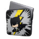 Echa un vistazo a la Chibi Batman haciendo una patada voladora contra el fondo de un rayo.