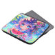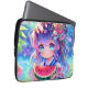 Adorable pequeño chica de anime comiendo sandía en un caluroso día de verano, lindo personalizado colorido en azul, púrpura y rosa.