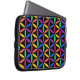 Diseño geométrico abstracto de círculos interrelacionados, colores arcoiris brillantes sobre fondo negro