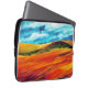 Colorido paisaje abstracto de colinas y cielo en colores de amarillo, rojo, verde y azul.