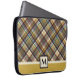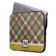 Esta bolsa de portátil de estilo de patrón de trenzado deportivo será una de tus favoritas para él o ella. Creado en dos tonalidades de tonos marrones y dorados predominantemente. Simplemente personaliza el texto en monograma en el sencillo editor de Zazzle.