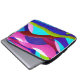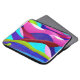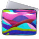 Colorido paisaje abstracto de colinas y un océano en colores de rosa, púrpura, azul, verde y cian.
