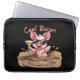 Piglet in sunglasses sitting in the mud with a cocktail and the slogan "Cool Bacon" on a black background waterproof neoprene laptop sleeve / tablet bag.