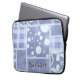 Funda Para Portátil Crazy Quilt Blue Gingham Floral Personalized