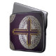 Proteja su portátil con un poco de arte! Esta funda de ordenador presenta un original diseño de arte hecho a mano de una cruz dorada y mandalas plateadas sobre un fondo púrpura real. Un gran regalo para la persona religiosa en tu vida...¡O a ti mismo!