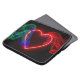 A bright red heart on a black background, with red, green and blue smoke, covers the front of this attention grabbing laptop bag.