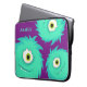 Diseño morado con monstruos turquesa adorables y difusos. El diseño se adapta a un niño o chica. Personaliza fácilmente con un nombre.