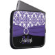 Esta manga negra y púrpura personalizada del ordenador portátil del damasco con una FALSA broche de la cinta y de la joya tiene cajas de texto para que usted modifique para requisitos particulares con el su propio nombre, iniciales, el nombre comercial, o el otro texto. Si usted necesita alguna ayuda que modifica para requisitos particulares, envíe por correo electrónico por favor niteowlstudio@gmail.com.