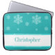 Whimsical y divertido Let it Snow Electronics Sleeve en turquesa con una cascada de copos de nieve dibujados a mano. Este divertido mango electrónico mantendrá su gadget protegido con el estilo de vacaciones o invierno. Fácil de personalizar, simplemente añada el texto personalizado de su elección.