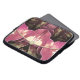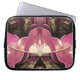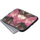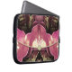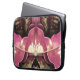 El diseño abstracto de esta funda de portátil de 10", al estilo de una bolsa de embrague, se hizo a partir de una fotografía original de ZoeSPEAK de una gran hoja ondulada y helechos en el jardín. La rodante hoja rosa rosa con sus resaltados de color crema se asemeja a la tela de seda antigua que corre frente a los frondes de helecho dorado satinado en las sombras profundas.