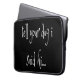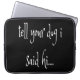 Guarde su portátil cuando esté de viaje con un mango de su portátil. El diseño de la manga portátil está adornado con el dicho "dile a tu perro que dije hola" sobre un fondo negro, pero puede ser personalizado según tu elección de color. Diseño de texto disponible en camisetas para mujeres y artículos de regalo adicionales.