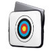 Diseño de objetivo Bullseye sobre negro, blanco, azul, rojo y amarillo. Surround/fondo transparente para añadir un color o mantener como blanco.