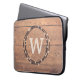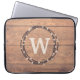 Diseño de monograma para Navidades con decoración de flores y nieve sobre fondo rústico de madera