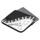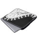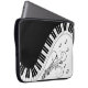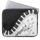 Teclado clásico blanco y negro con un toque curvo. Las notas musicales agregadas le dan un aspecto festivo.