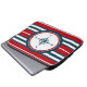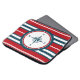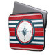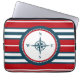 Diseño náutico con decoración de brújula en forma redonda sobre fondo rayado rojo, azul y blanco