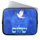 El "shalom" (paz hebrea) y la paloma con un poco de rama de olivo en el pico sobre un agradable fondo fractal azul y blanco que recuerda a las alas de los pájaros.