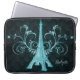 Funda Para Portátil Eiffel Tower Teal Floral Swirls