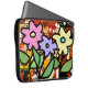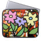 Flores estilizadas rosas, azules y amarillas sobre un fondo de imagen impreso en pintura abstracta. Guay para los chicas