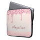 Lleva tu tecnología con estilo con esta elegante funda para laptop rosa con brillo y encaje para despedida de soltera. El diseño presenta gotas de brillo rosa falso en cascada sobre un fondo suave y brillante con acentos de brillo que le dan un acabado lujoso y moderno. Un detalle de encaje sutil en la parte inferior añade un toque de encanto femenino. Perfecta para la escuela, el trabajo o el glamour diario, esta funda se puede personalizar con un nombre—lo que la convierte en un regalo considerado para cumpleaños, regreso a clases o mejoras para el hogar de oficina con estilo.