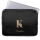 El elegante manga negra para portátiles incluye un monograma botánico dorado en el centro.