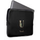 El elegante manga negra para portátiles incluye un monograma botánico dorado en el centro.