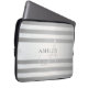 Funda Para Portátil Elegante Monograma Faux Plata Gradiente Rayas Gris