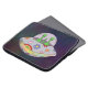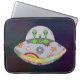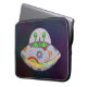 En este divertido ilustracion de ciencia ficción de Richard H. Fay, extraterrestres verdes y groovys montan en un platillo volador decorado con flores, corazones, una estrella y un arco iris.