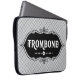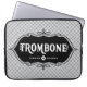 El trombón en texto decorativo contra un emblema blanco o negro es un regalo único para músicos de bajo bronce, profesores de música y estudiantes en concierto, jazz y banda de marcha.