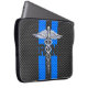El diseño de RN del Simbol Médico Simbólico de Plata Cromado como Caducus presentado aquí sobre el fondo impreso de rayas azules con acento de fibra de carbono. Las serpientes caduceus están diseñadas para parecer cromadas. Es bueno para una ocasión de graduación, una declaración para tu profesión, o para un regalo con esa apariencia médica que estás buscando. Utilice el enlace "Mensaje" para contactarnos con sus solicitudes de diseño especiales o para obtener alguna ayuda con sus necesidades de personalización.