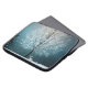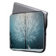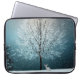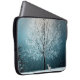 El diseño presenta una imagen de un árbol de invierno en la nieve.