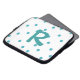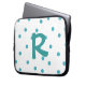 Manga de la parte superior de las faldas monograma caprichosa hecha en blanco, con puntos de polka aguamarina. Un gran monograma de una letra de aguamarina, en medio del funda. Personalice la carta por usted mismo o como una hermosa idea de regalo.