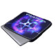 Una imagen fractal púrpura y azul de una estrella de cinco puntas en un remolino de color circundante; todo sobre un fondo oscuro. Añade tu propio texto.