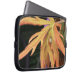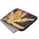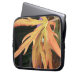 El trabajo de arte de esta funda de portátil de 10" es una fotografía de cierre original de HomeWare de una hoja en una joven planta de coral. Las plantas tienen hojas de palmera cuyos folletos tienen bordes enrollados. Después de un cambio de color, la hoja parece oro rojizo. Las macetas de flores se han vuelto moradas, todo con un fondo marrón oscuro y verde.
