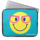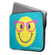 Esta divertida manga verde azulada para portátil presenta una cara feliz amarilla con falsos anteojos de purpurina rosa y cinta blanca en la cresta de la nariz. Un diseño alegre y colorido perfecto para los niños. Personalízalo para crear un accesorio tecnológico único que les encantará.