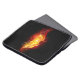 Una brillante pluma de pavo real hecha de fuego y llama sobre fondo negro.