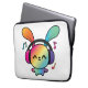 Funda Para Portátil Feliz Conejo con auriculares escuchando música.