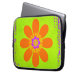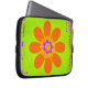 Una flor vibrante que recuerda a los años 70. Los colores son amarillo verde, violeta, naranja, amarillo y rosa.