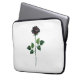 Rosa negro simbólico, dibujado de forma artística, con tallos verdes y hojas sobre fondo blanco. Rosa negro.