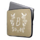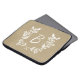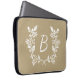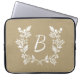Manga rústica para ordenador portátil con correa floral blanca y monograma personalizado sobre fondo beige angustiado.