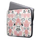Esta funda de portátil floral de bonito tiene hojas y flores en tonos rosas, azules, amarillos y negros sobre un fondo blanco.
