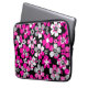 Striking Pink, Grey, and White flowers on a black background waterproof electronics bag / laptop and tablet sleeve.